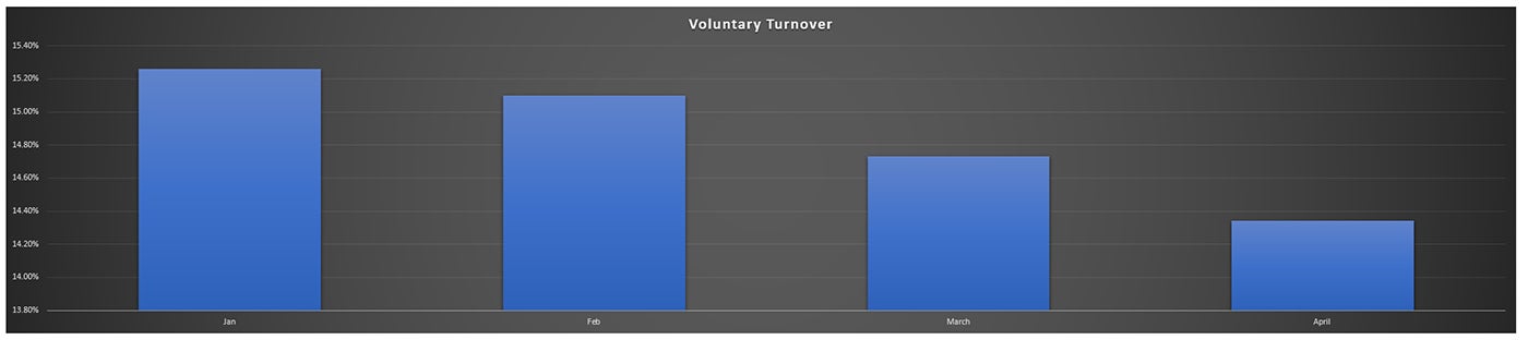 Additionally, we are tracking the voluntary turnover rate for our providers and have seen a downward trend (Figure 3). Preparing our providers for their first year at our organization and having frequent check-ins has made a difference.